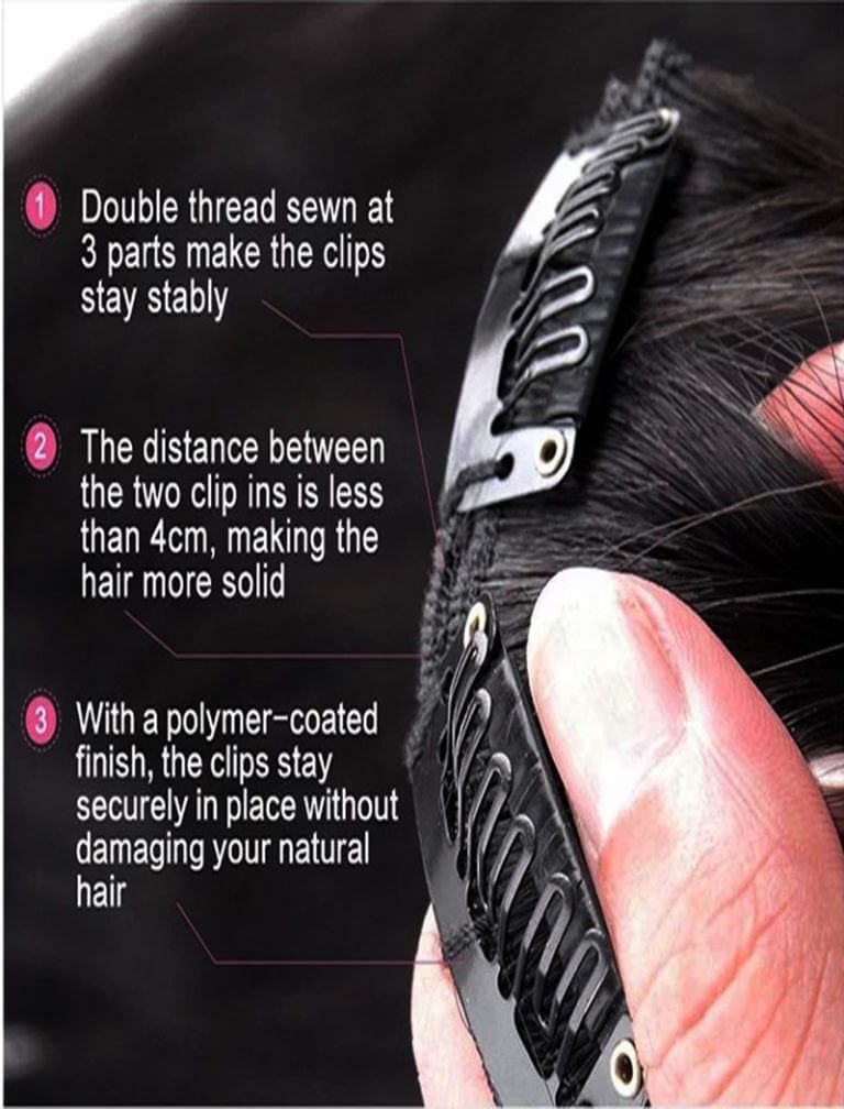 Discover the elegance of our 6-piece Remy human hair extensions/volumizer set. Crafted from top-quality Remy human hair, these extensions ensure a seamless, tangle-free blend with your natural locks. The 13 secure clips enable effortless clip-in installation, delivering a quick and natural transformation. Lightweight and comfortable, they provide confidence for any occasion. With endless styling possibilities, achieve voluminous curls, chic updos, or simply add length and thickness. The extensions move naturally, offering an undetectable appearance. Heat-friendly and versatile, style them to match your mood. Embrace the allure of natural beauty, order now and step into a world of effortless elegance!